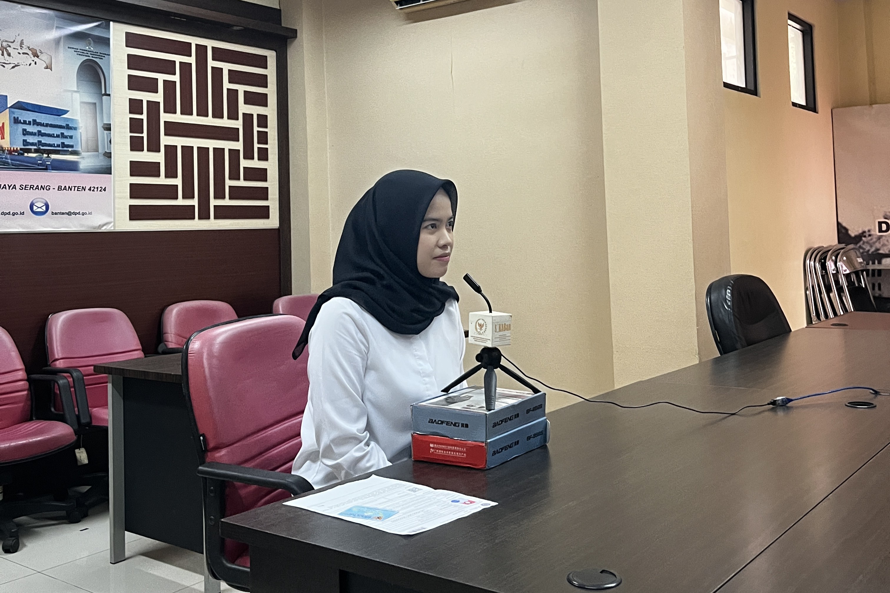 Selasa, 26 November 2024 Kantor DPD RI di Ibu Kota Provinsi Banten telah melaksanakan rangkaian tes Seleksi Kompetensi Bidang (SKB) Non-CAT berupa wawancara bagi Calon Pegawai Negeri Sipil (CPNS) yang sebelumnya berhasil lolos tahap Seleksi Kompetensi Dasar (SKD). Kegiatan wawancara ini diikuti oleh lima peserta dari Provinsi Banten dan dilaksanakan secara daring melalui Zoom Meeting di Kantor DPD RI di Ibu Kota Provinsi Banten.