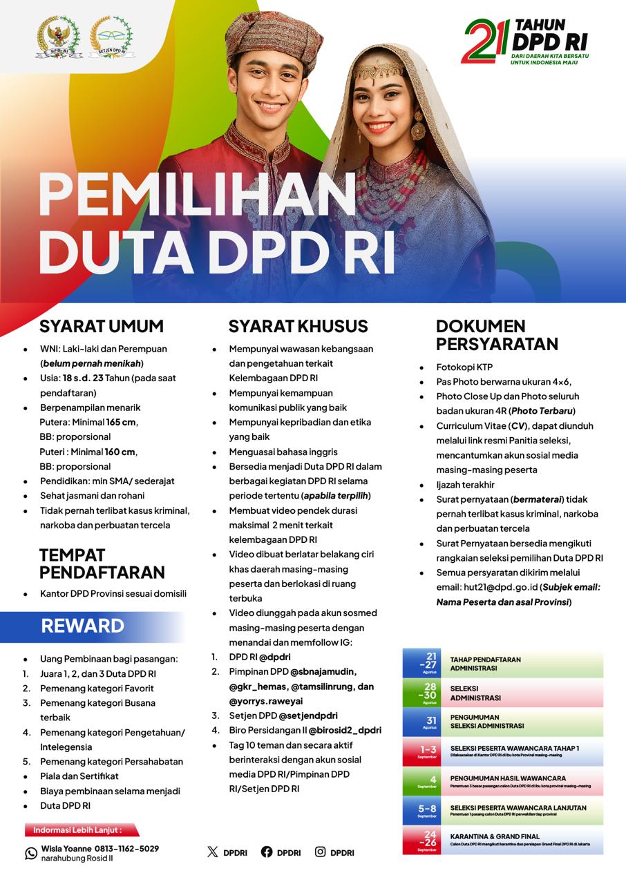 DPD RI berkomitmen untuk terus hadir di tengah masyarakat sebagai lembaga representatif daerah yang memperjuangkan kepentingan daerah secara adil, aspiratif, dan berkelanjutan.